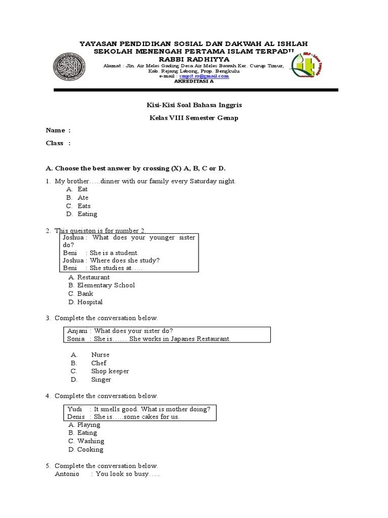 - Prediksi Jenis Soal: Kisi-kisi biasanya mencantumkan jenis soal yang akan keluar (misalnya, pilihan ganda, isian singkat, uraian). Ini membantu siswa berlatih menjawab soal dengan format yang tepat.