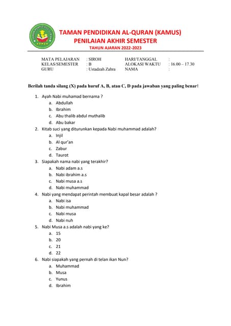 - Mengembangkan Keterampilan Kognitif: Soal-soal Siroh, terutama yang bersifat pilihan ganda, isian singkat, dan mencocokkan, dapat membantu mengembangkan kemampuan berpikir, mengingat, dan menganalisis anak.