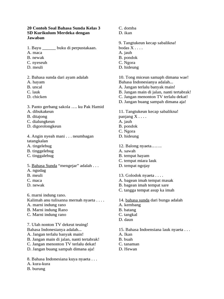 - Meningkatkan Kepercayaan Diri: Keberhasilan dalam menjawab soal dapat meningkatkan kepercayaan diri siswa dalam menggunakan Bahasa Sunda. Ini penting untuk menumbuhkan minat belajar yang berkelanjutan.