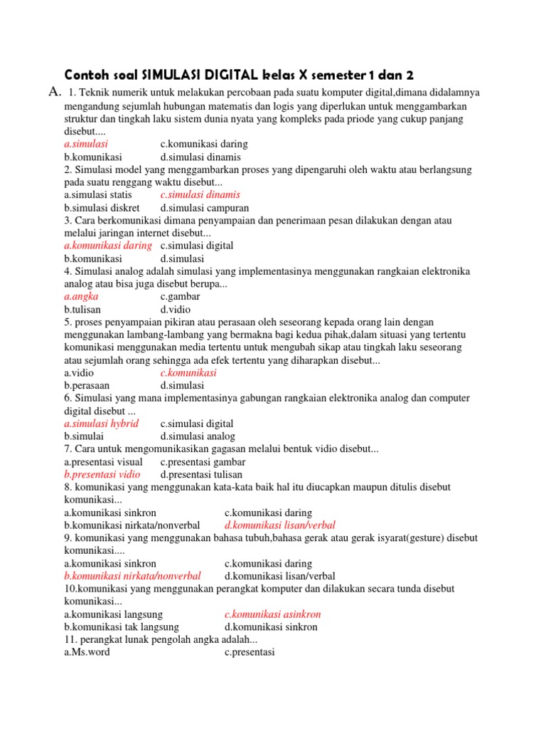 Pada semester pertama kelas 10, materi Simulasi Digital biasanya berfokus pada pengenalan konsep dasar, pemanfaatan perangkat lunak aplikasi perkantoran, serta dasar-dasar presentasi digital. Memahami materi ini dengan baik akan menjadi fondasi yang kokoh untuk mata pelajaran lain yang juga bersentuhan dengan teknologi. Untuk membantu para siswa dalam mempersiapkan diri menghadapi penilaian akhir semester, artikel ini akan menyajikan serangkaian contoh soal simulasi digital yang relevan dengan kurikulum 2013, lengkap dengan penjelasan mendalam untuk setiap tipe soal.